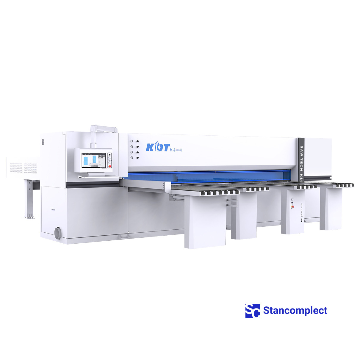 CNC velkoplošná pila KS-543HM se dvojitým tlačníkem od KDT Machinery je určena pro automatické řezání balíku laminovaných nebo nenatíraných dřevotřískových desek, MDF, dřevovláknitých desek s maximální výškou balíku do 120 mm. CNC velkoplošná pila od KDT se vyznačuje nejvyšší spolehlivostí, velkou mírou bezpečnosti a vysokou kvalitou řezání laminovaných desek.
