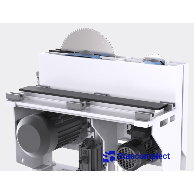 Zvedání hlavní pily je prováděno servopohonem, díky kterému je dosaženo vysoké přesnosti výšky řezu při drážkování.