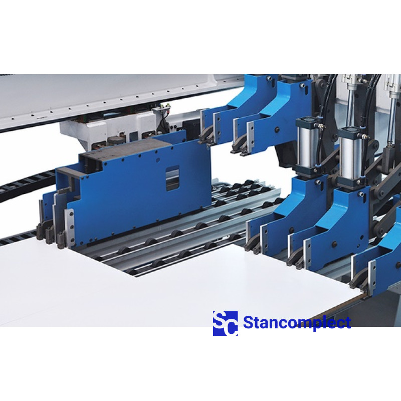 Programovatelný posunovač je vybaven osmi dvouprstými pneumatickými chapadly, což zaručuje bezpečnou fixaci balíku obrobků.