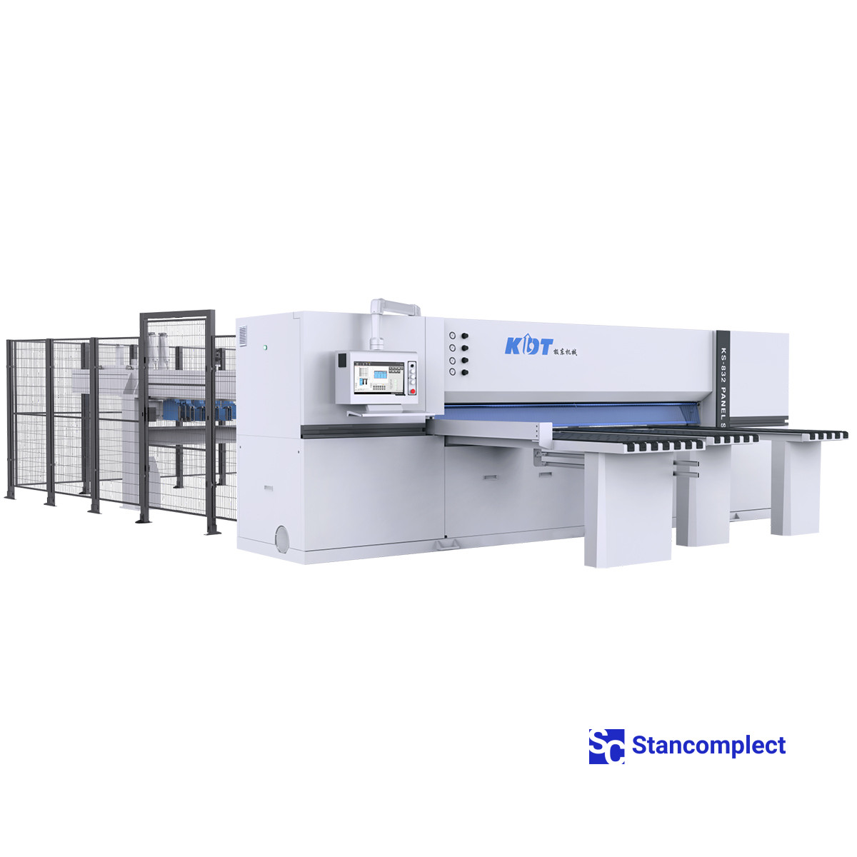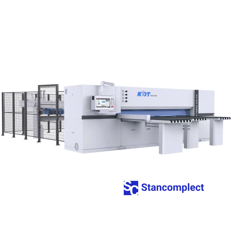 CNC velkoplošná pila KS-832HT s dvojitým posunovačem od KDT Machinery je určena pro automatické řezání balíku laminovaných nebo nenatíraných dřevotřískových desek, MDF, dřevovláknitých desek s maximální výškou balíku do 90 mm. CNC velkoplošná pila od KDT se vyznačuje nejvyšší spolehlivostí, velkou mírou bezpečnosti a vysokou kvalitou řezání laminovaných desek.