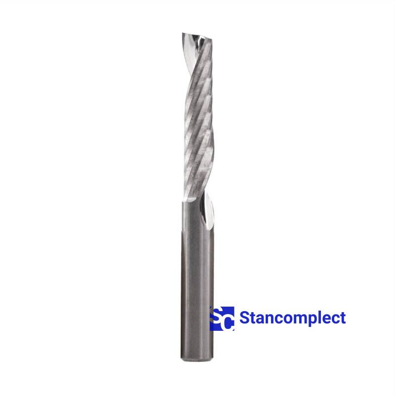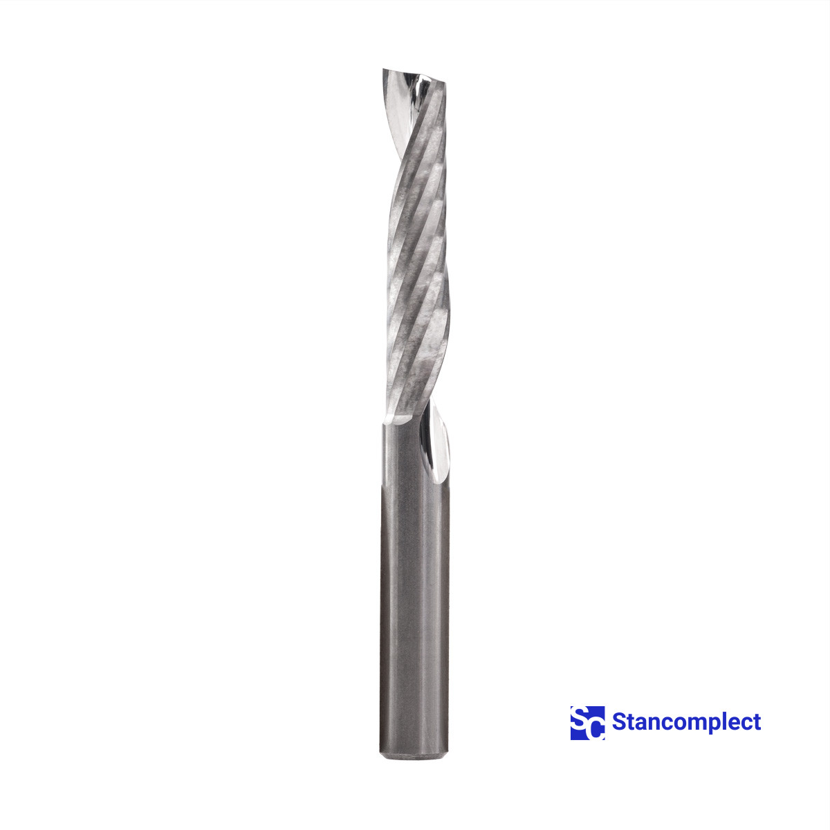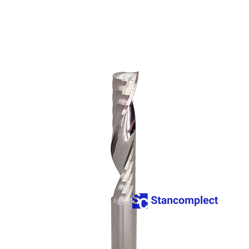 Spirálová fréza pozitivní 5x25x50 mm pro CNC stroj slouží ke zpracování tvrdých umělých materiálů jako je akryl, plast, plexisklo apod., dále ke zpracování měkkého dřeva - hrubování nebo řezání přířezů.