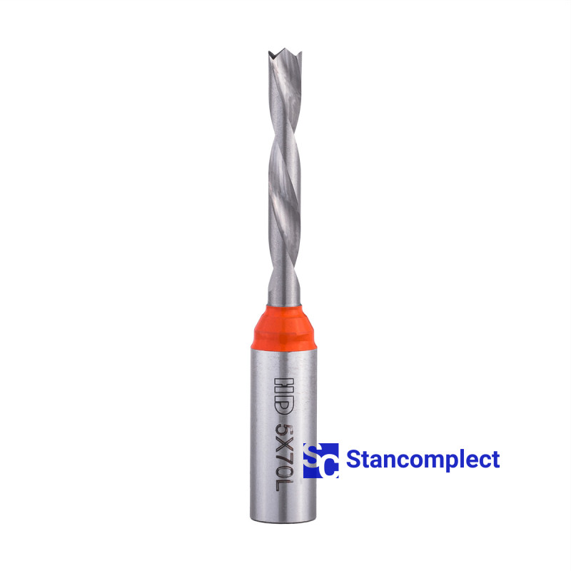 Kolíkovací vrták neprůchozí celotvrdokov HD d-5 mm, L-70 mm levý (série 301). Tento vrták je vynikající pro vrtání slepých otvorů do obrobků z: MDF, dřevotřískové desky, dřevotřísky, masivního dřeva, měkkého dřeva a překližky.
