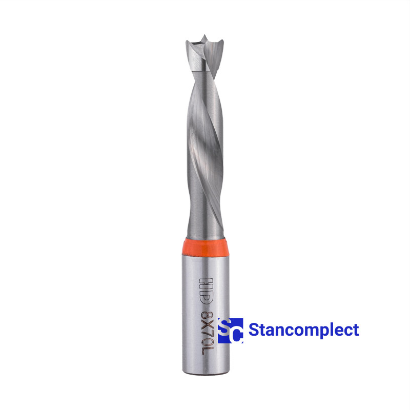 Kolíkovací vrták neprůchozí celotvrdokov HD d-8 mm, L-70 mm levý (série 301). Tento vrták je vynikající pro vrtání slepých otvorů do obrobků z: MDF, dřevotřískové desky, dřevotřísky, masivního dřeva, měkkého dřeva a překližky.