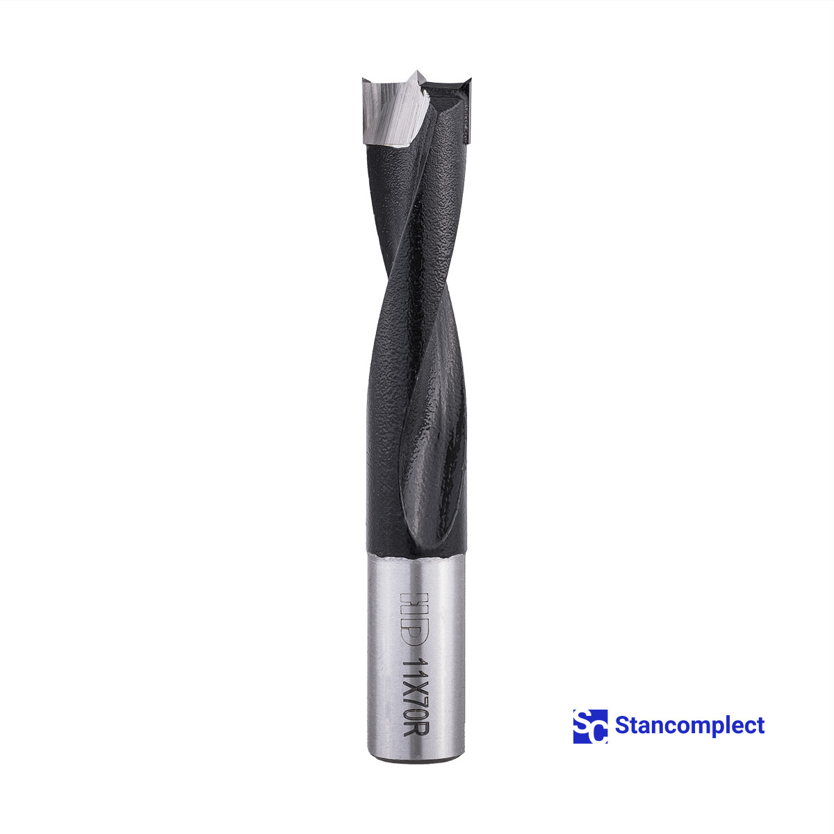 Kolíkovací vrták neprůchozí HD d-11 mm, L-70 mm pravý s pájenou deskou (série 110). Tento vrták je vynikající pro vrtání slepých otvorů do obrobků z: MDF, dřevotřískové desky, dřevotřísky, masivního dřeva, měkkého dřeva a překližky.