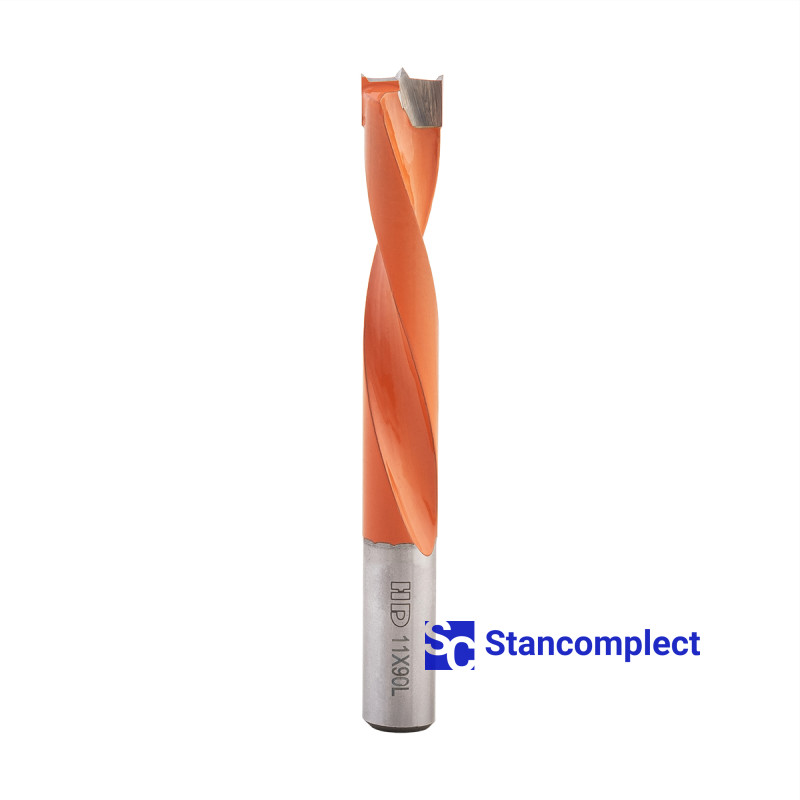 Kolíkovací vrták neprůchozí HD d-11 mm, L-90 mm levý s pájenou destičkou (série 110). Tento vrták je vynikající pro vrtání slepých otvorů do obrobků z: MDF, dřevotřískové desky, dřevotřísky, masivního dřeva, měkkého dřeva a překližky.