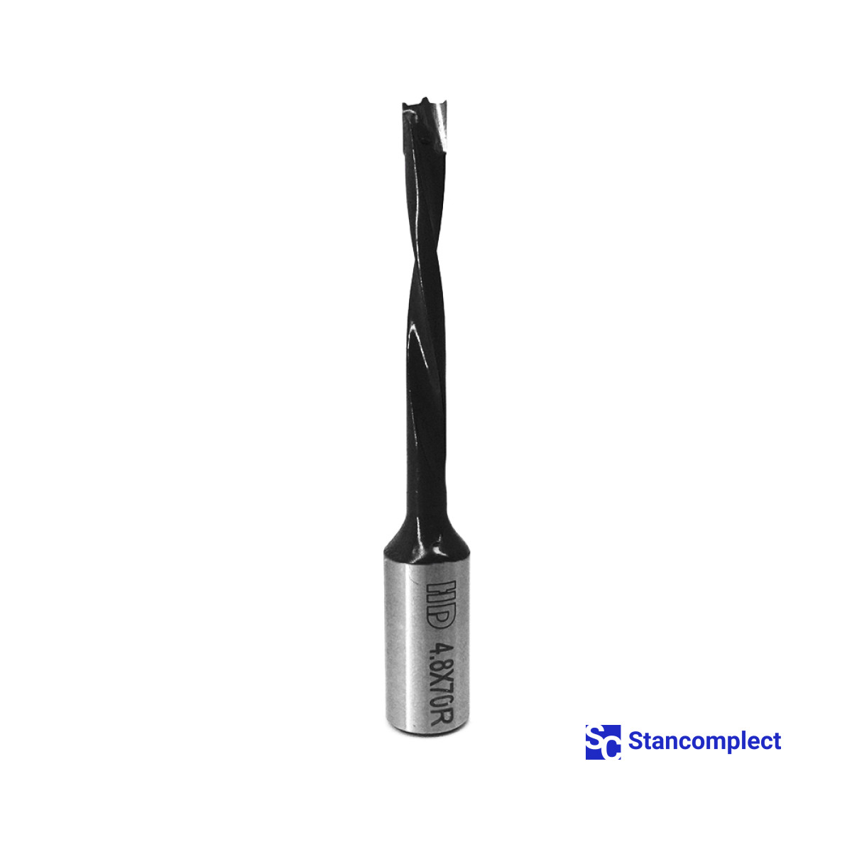 Kolíkovací vrták neprůchozí HD d-4,8 mm, L-70 mm pravý s pájenou deskou (série 110). Tento vrták je vynikající pro vrtání slepých otvorů do obrobků z: MDF, dřevotřískové desky, dřevotřísky, masivního dřeva, měkkého dřeva a překližky.