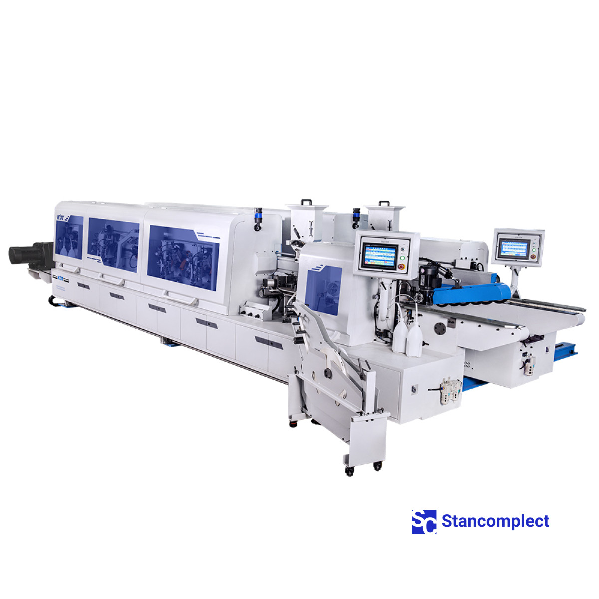 Oboustranná automatická olepovačka hran KE-2468JHSK od KDT MACHINERY je určena pro současné olepování rovných hran nábytkových desek a přířezů syntetickým rolovacím materiálem. Uplatňuje se v nábytkářských podnicích, které pronajímají sériový nábytek.