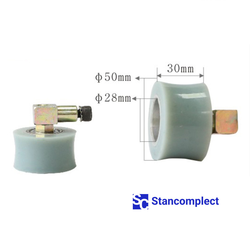 Přítlačný válec pro obalovací stroj U-503 rozměr 50x30x28 s hřídelí. Válce se používají na strojích pro laminování (obalování) profilů z MDF, masivního dřeva, dřevotřísky, plastu, hliníku atd. s válcovanými dokončovacími materiály, jako je dekorační papír, dýha.