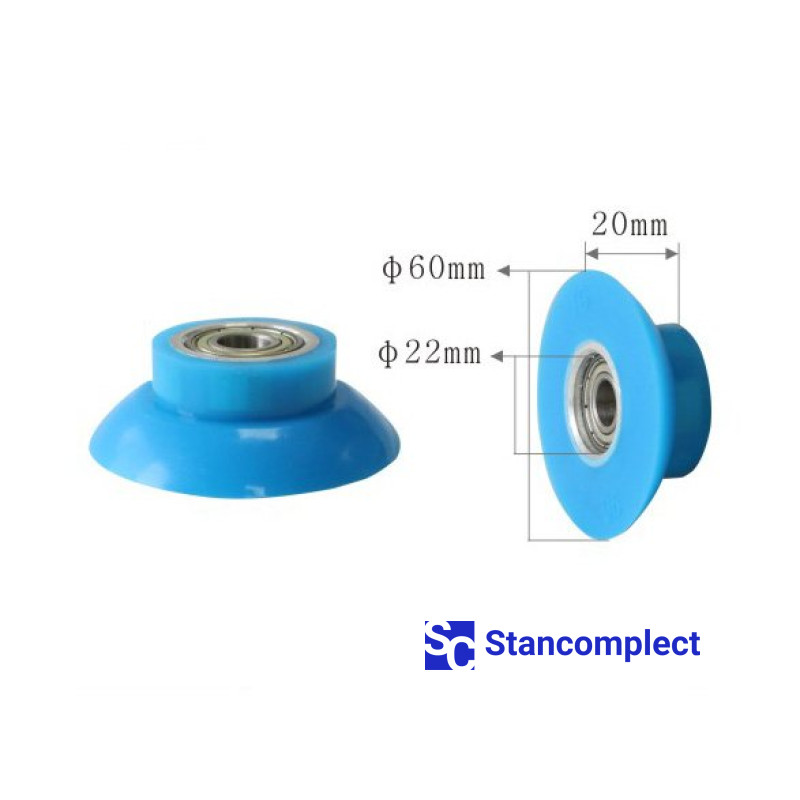 Přítlačný válec pro obalovací stroj U-525 rozměr 60x20x22 s hřídel. Válce se používají na strojích pro laminování (obalování) profilů z MDF, masivního dřeva, dřevotřísky, plastu, hliníku atd. s válcovanými dokončovacími materiály, jako je dekorační papír, dýha.