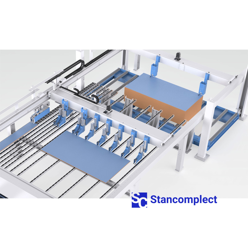 - Automatické zadní nakládání na stroj umožňuje naložit balík o maximální velikosti 4300x2100 mm.