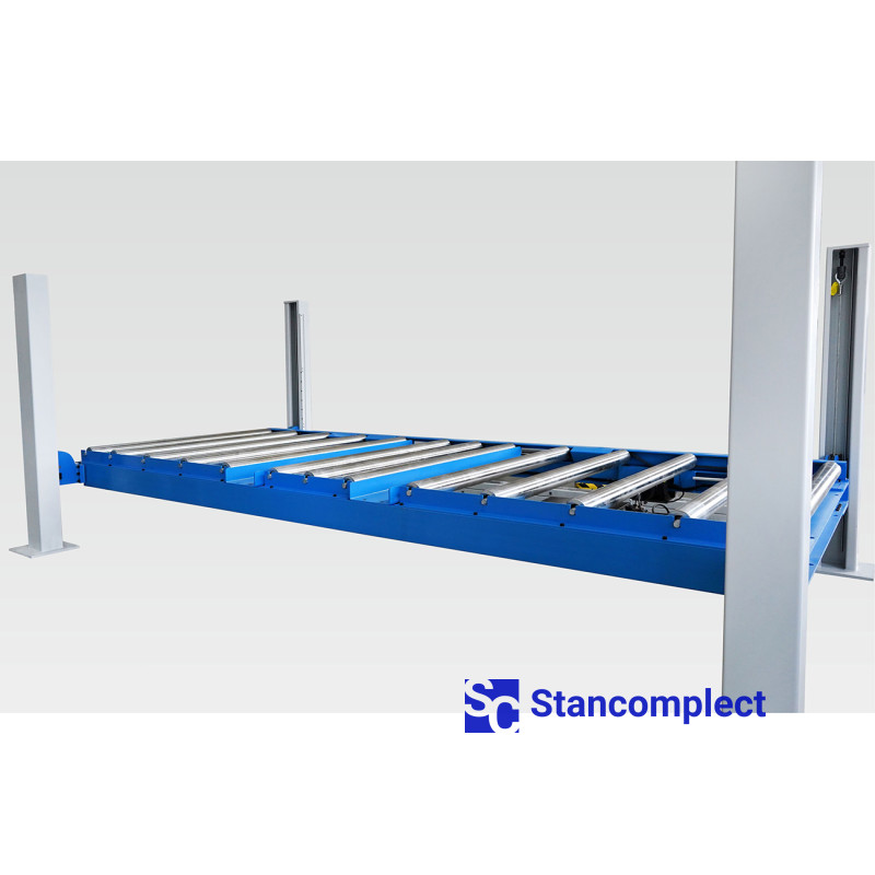 - Plošina s poháněným válečkovým stolem, upevněná na lanech.