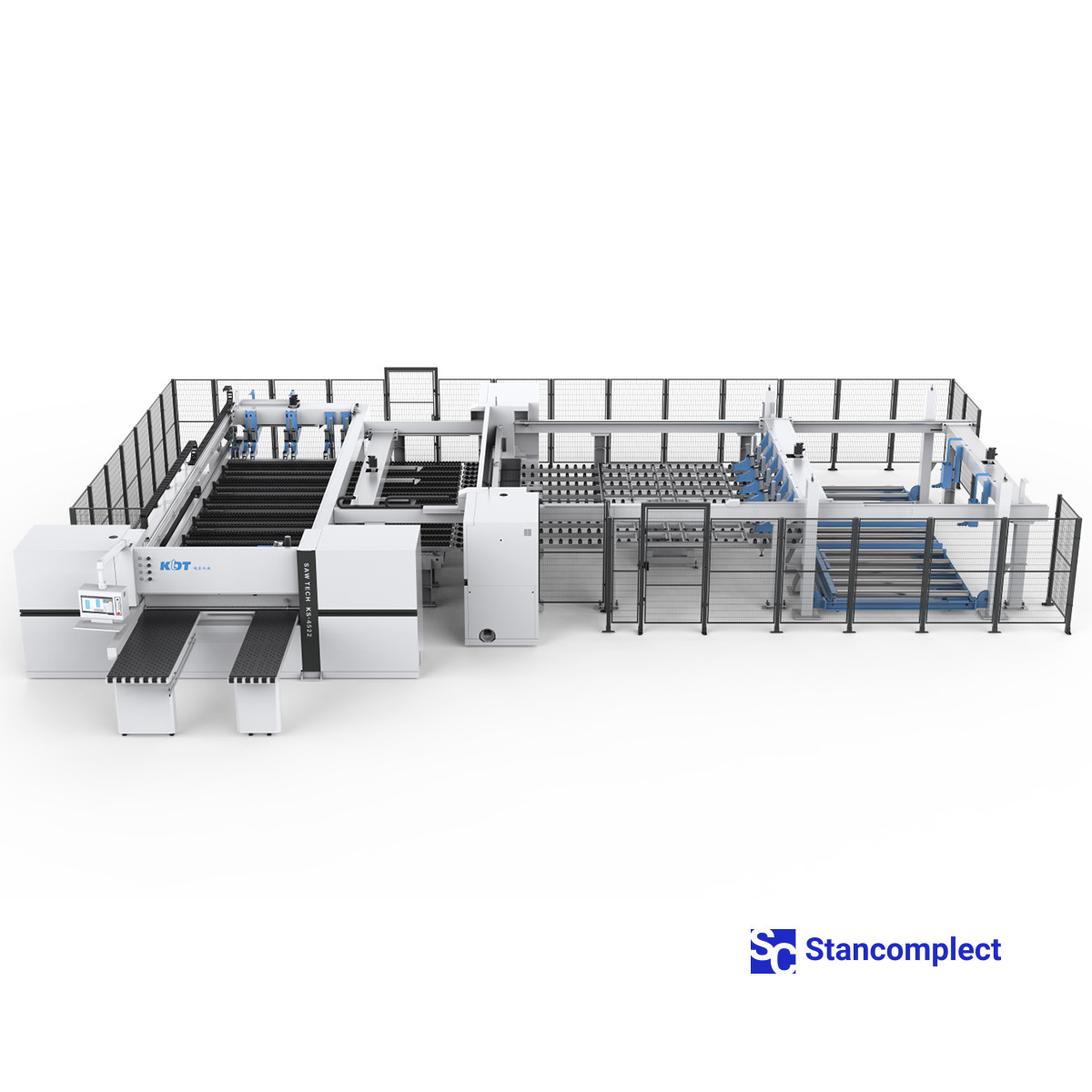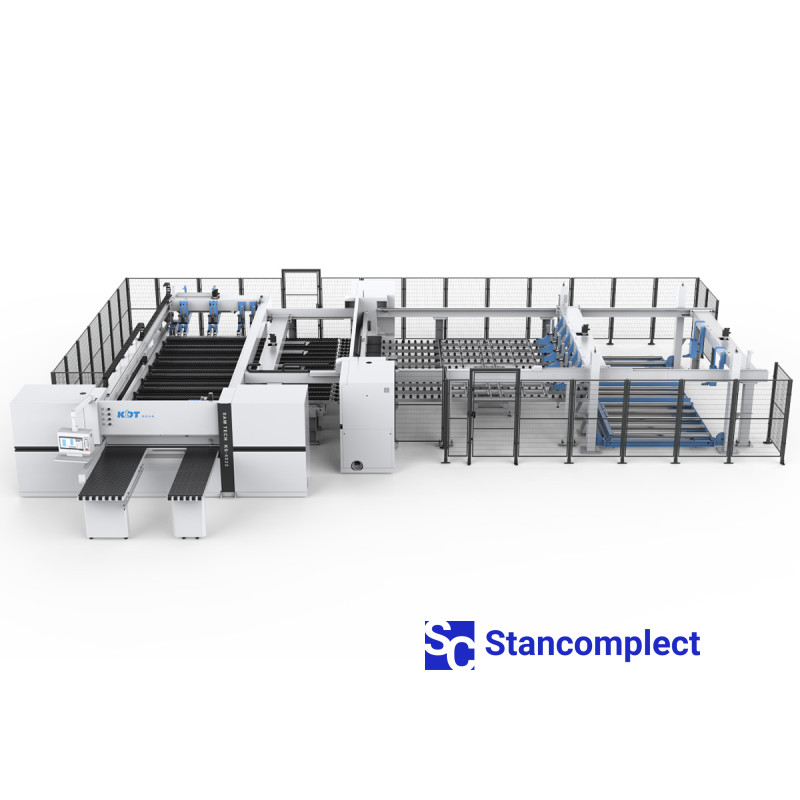 Úhlová CNC velkoplošná pila KS-843HLM se zadním nakládáním a dvojitým tlačníkem od KDT Machinery je určena pro automatické řezání balíku potažené nebo nepotažené dřevotřískové desky, MDF, dřevovláknité desky s maximální výškou balíku do 120 mm. CNC velkoplošná pila od KDT se vyznačuje nejvyšší spolehlivostí, velkou mírou bezpečnosti a vysokou kvalitou řezání laminovaných desek.