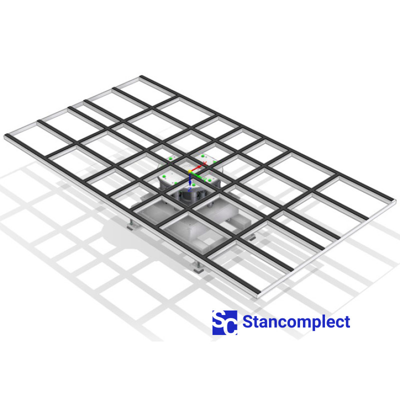 Otočný stůl je určen pro soustružení deskových materiálů. Podle zadaného optimalizačního programu stroj určí potřebu otočit balík materiálu. Max. rozměry materiálu: 4300x2100 mm.