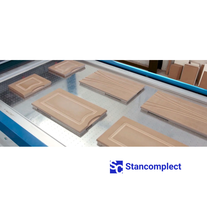In the production of furniture facades in PVC film, it uses small sticks from MDF waste as a substrate for a vacuum press. The sizes of the bars are different, which are quite easy to decompose by selecting along the perimeter of any part of the facade. The difficulty here is precisely the need to select bars of appropriate size for each part in order to provide the required amount of overhang for bending the film and prevent the vacuum force from bending or breaking the product in places where there is no substrate.