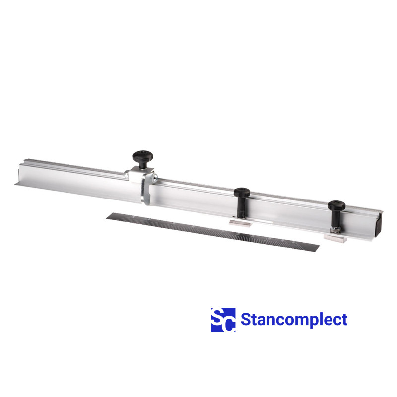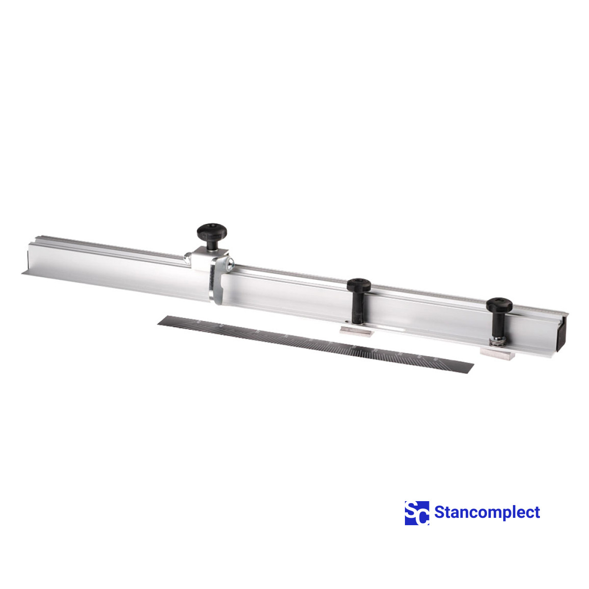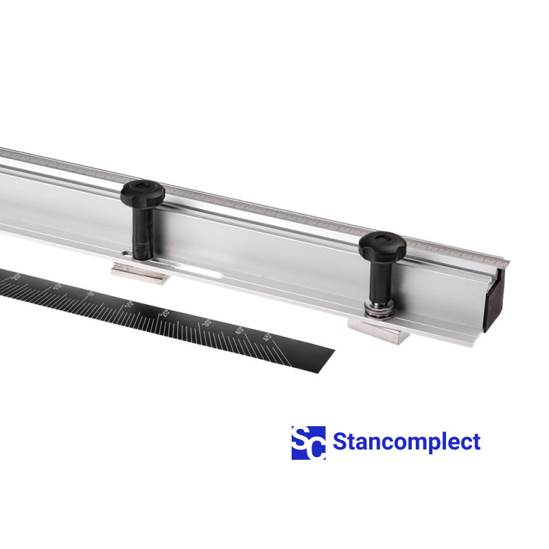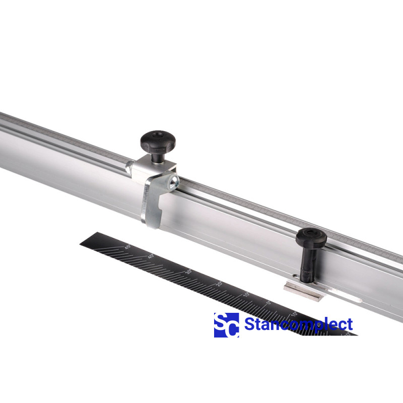 Angle ruler 900 mm with hinged stop and scale for sliding table saw.