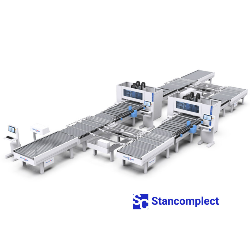 The KDT Line-2 automatic line based on 2 KDT KD-612KHSA CNC drilling centers is designed for high-precision drilling of blind and through holes in the planes and ends of furniture parts in the through mode, according to a given filler map. The machine is equipped with a milling unit, which allows milling straight and curved grooves.