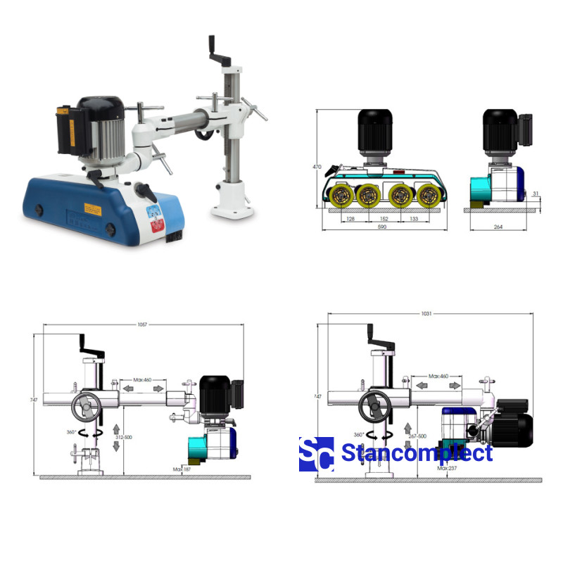 - The bracket is attached to the machine table with 4 bolts. Bolts and a drilling template are included in the delivery.