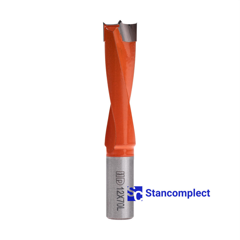Blind hole drill bit HD d-12 mm, L-70 mm left with brazed plate (110 series). This drill bit is excellent for drilling blind holes in workpieces made of: MDF, chipboard, chipboard, solid wood, softwood and plywood.