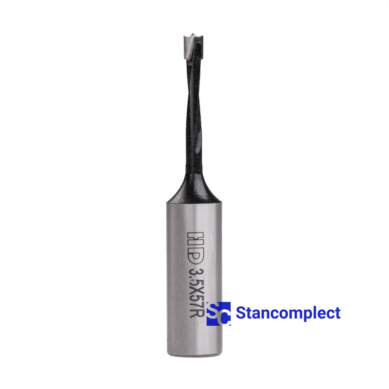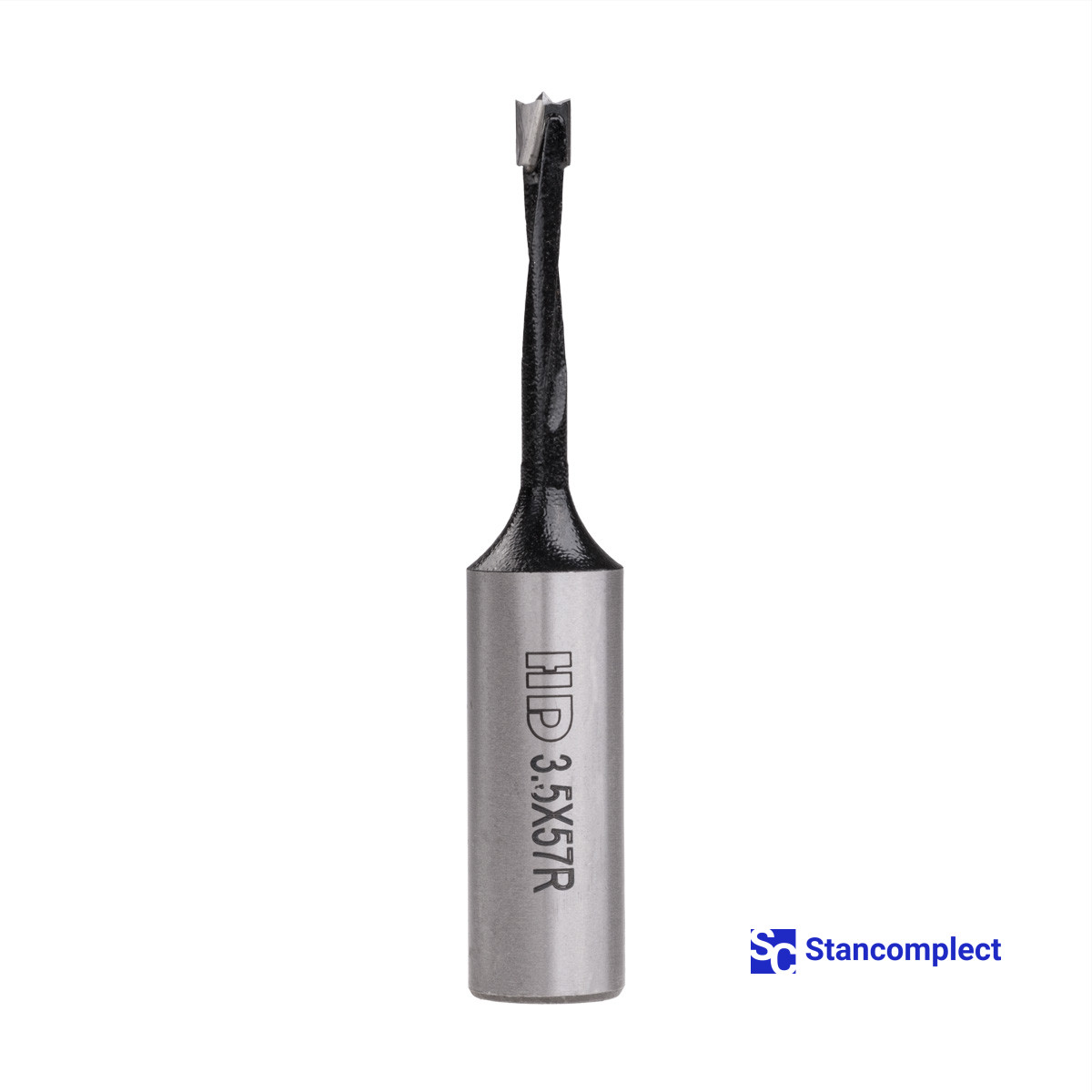 Blind hole drill bit HD d-3.5 mm, L-57 mm right with brazed plate (110 series). This drill bit is excellent for drilling blind holes in workpieces made of: MDF, chipboard, chipboard, solid wood, softwood and plywood.