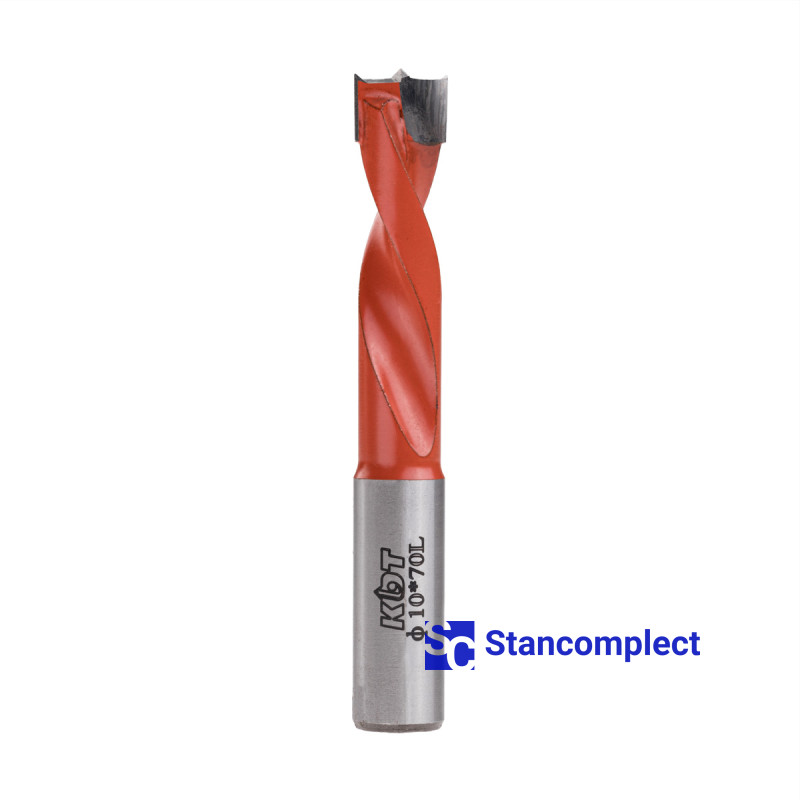 Blind hole drill bit KDT d-10 mm, L-70 mm left with brazed plate (110 series). This drill bit is excellent for drilling blind holes in workpieces made of: MDF, chipboard, chipboard, solid wood, softwood and plywood.