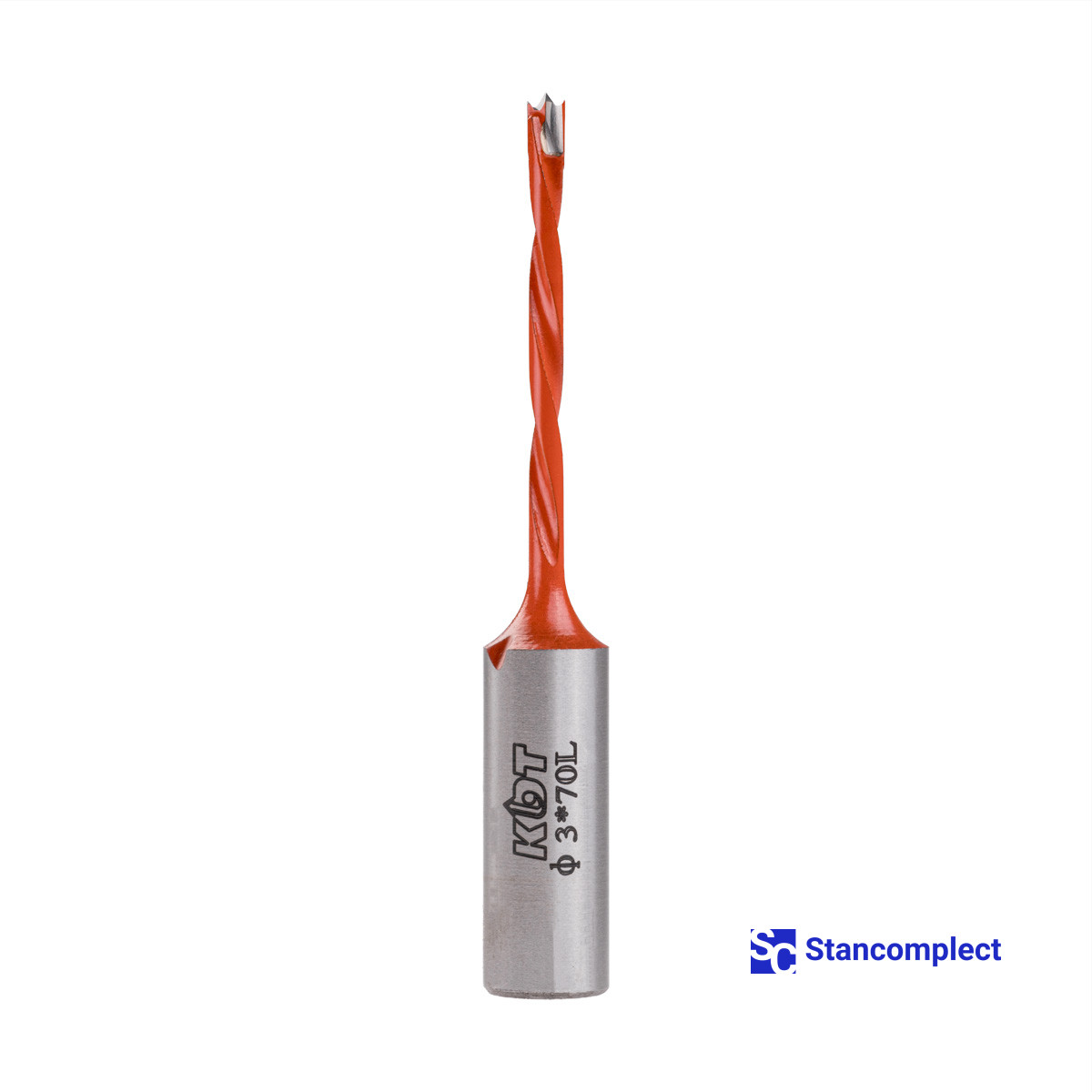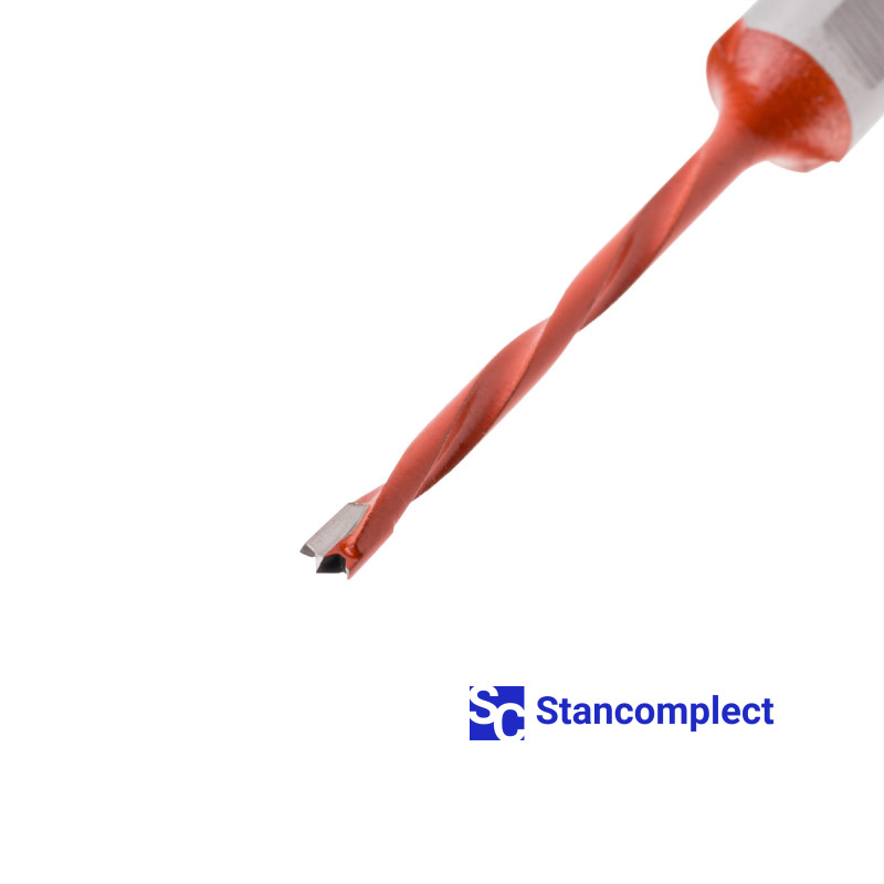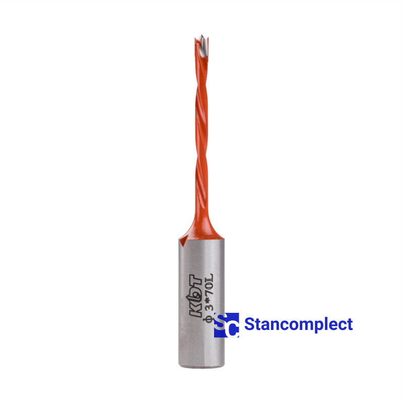 Blind hole drill bit KDT d-3 mm, L-70 mm left with brazed plate (110 series). This drill bit is excellent for drilling blind holes in workpieces made of: MDF, chipboard, chipboard, solid wood, softwood and plywood.