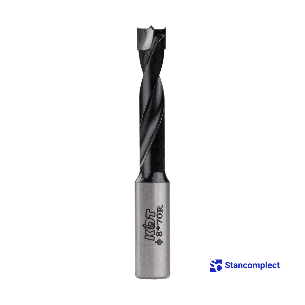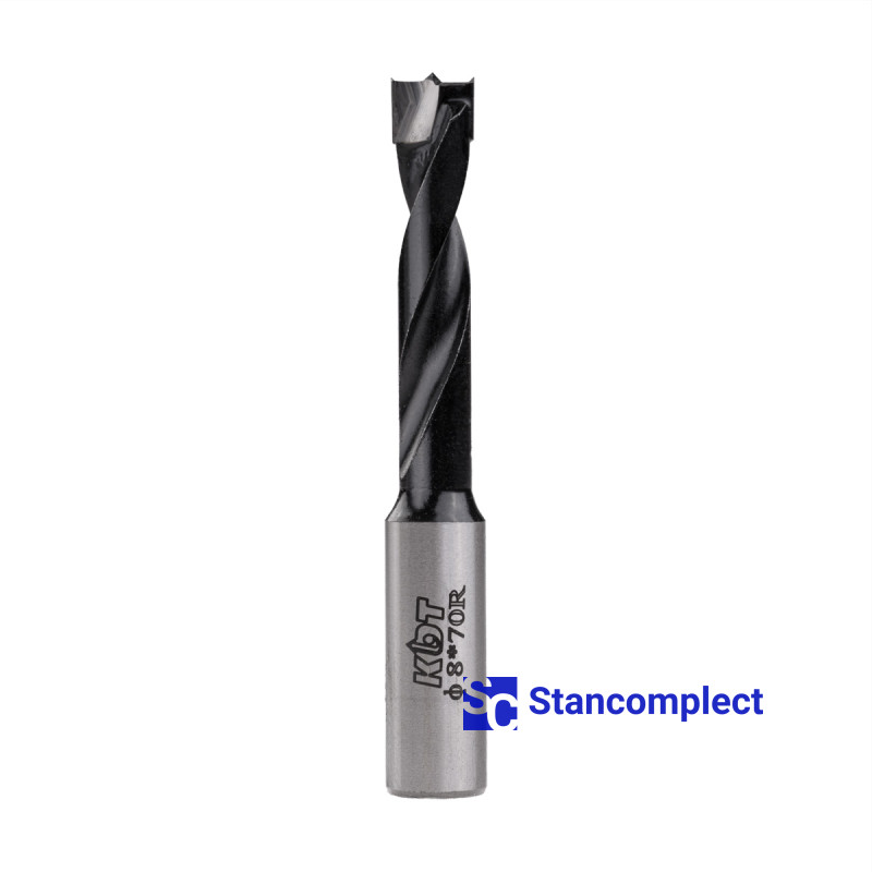 Blind hole drill bit KDT d-8 mm, L-70 mm right with brazed plate (110 series). This drill bit is excellent for drilling blind holes in workpieces made of: MDF, chipboard, chipboard, solid wood, softwood and plywood.