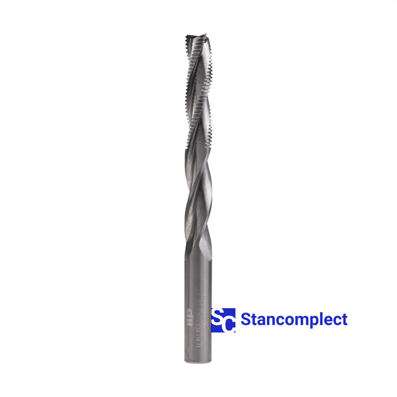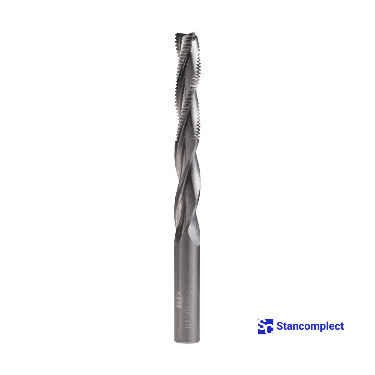 Chipbreaker router bit 14x55x165 mm for CNC machines for wood. Chipbreaker bit is designed for processing hard and soft wood species (contour cutting, sampling, grooving), cutting plywood, MDF, blockboards, solid wood, door panels. Chipbreaker router bit is excellent for roughing relief at fairly high speeds.
