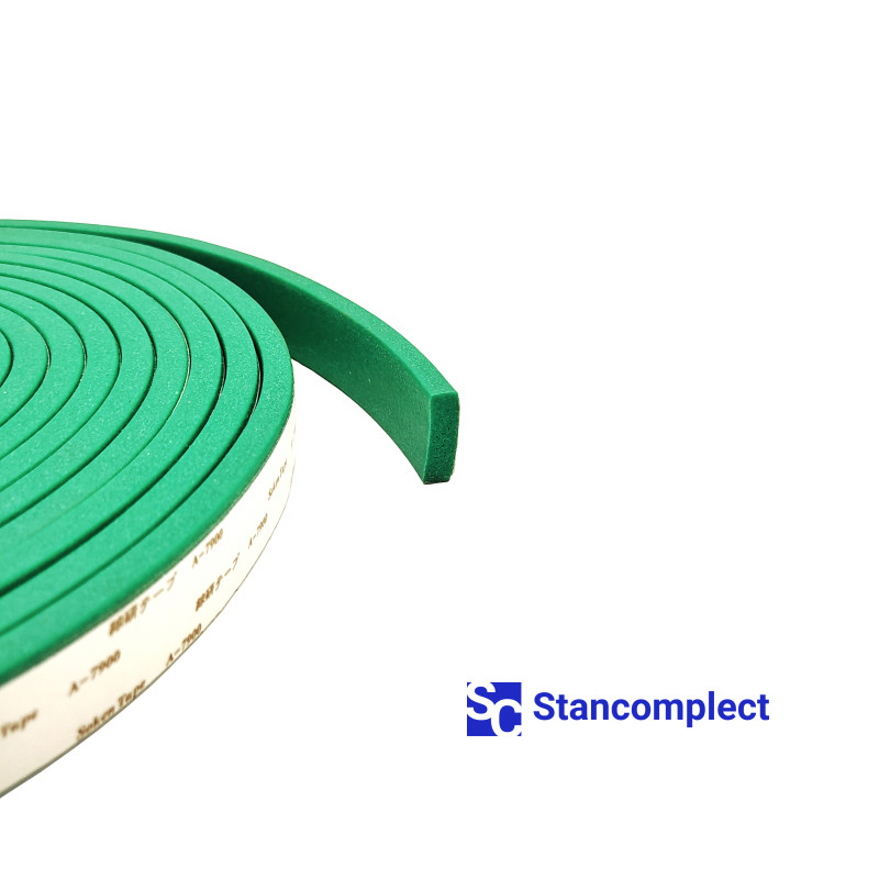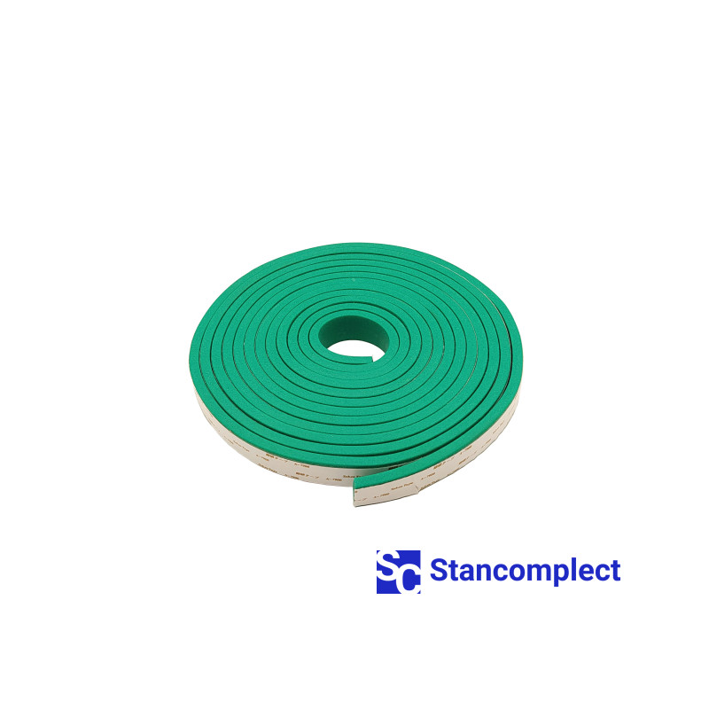 Adhesive-backed pressure beam rubber 6x20 mm green (5 m roll) for CNC beam saws.
