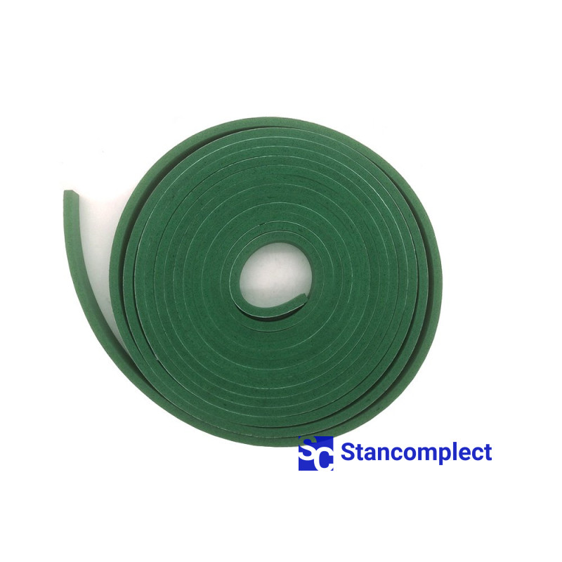 Adhesive-backed pressure beam rubber 6x20 mm green economy (5 m roll) for CNC beam saws.