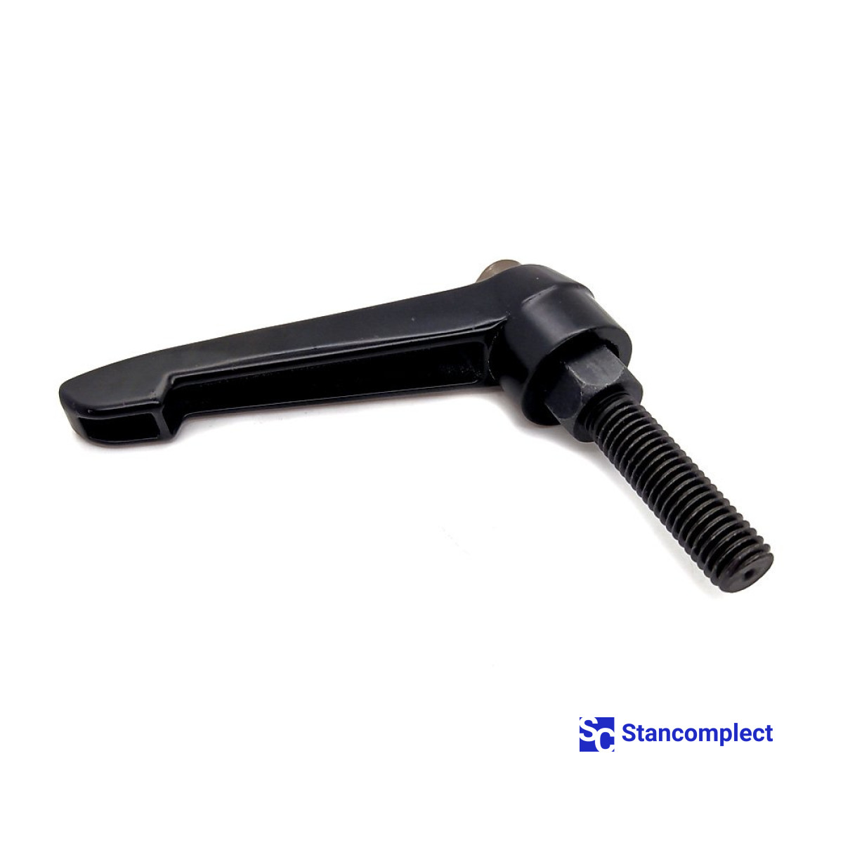 Adjustable clamping handle M12x40 with external thread . Clamping handles are designed to hold or maintain tension on individual parts and assemblies. The high torque is generated by pulling the linkage. Raising the handle with the metal bolt pressed down releases the spacers, allowing the handle to be rotated to the required angle. By lowering the handle, you can continue screwing the handle. With the handle disabled, a metal bolt can be screwed into an object using a hex socket. The safety handle returns it to its original position. Clamping levers of this type can be screwed on or rotated by pressing the handle. The handle will automatically deactivate when it returns to its original position.