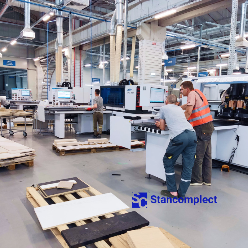 The machine can process two panels at the same time, both top and bottom, within one working cycle, thanks to the possibility of drilling from 6 sides.