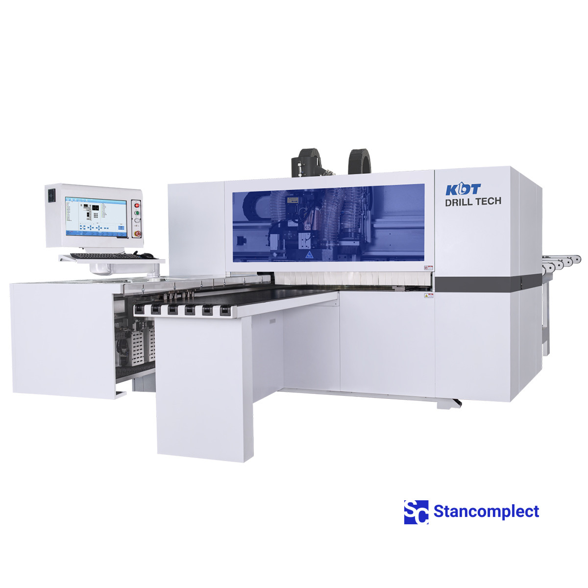 CNC drilling center KD-612NHS with three drilling groups at the top and bottom (milling + grooving saw) for drilling from 6 sides from KDT Machinery is designed for high-precision drilling of blind and through holes in the planes and ends of furniture parts in through mode , according to the given additive map. The machine is equipped with a milling unit, which allows milling straight and curved grooves.