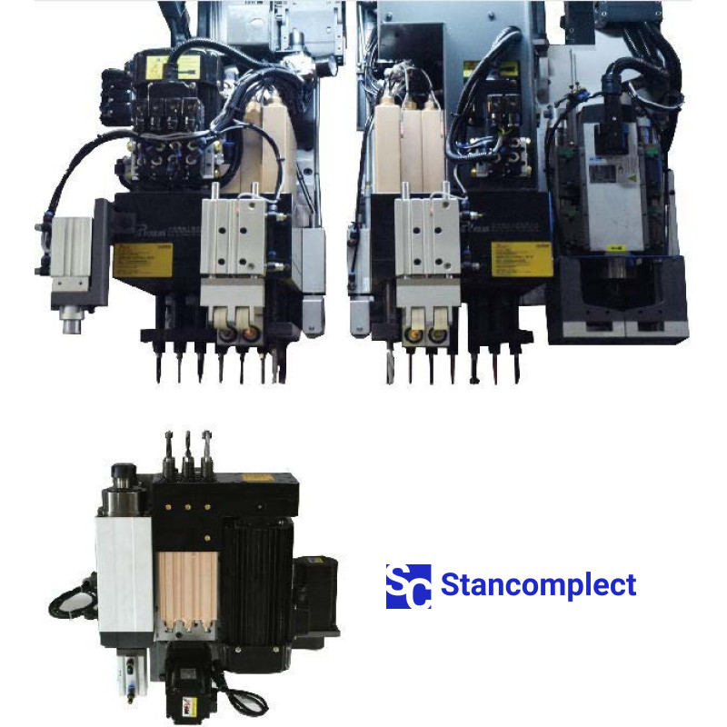 2 milling spindles: upper - 5.5 kW, lower - 3.5 kW, 18000 rpm (top and bottom) for cutting straight and curved grooves.