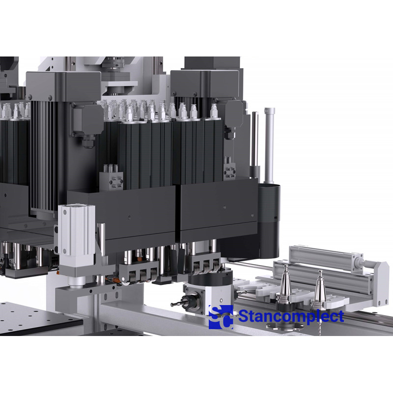 The upper milling spindle is equipped with a 5-position linear tool change, which saves time when switching from one type of processing to another.
