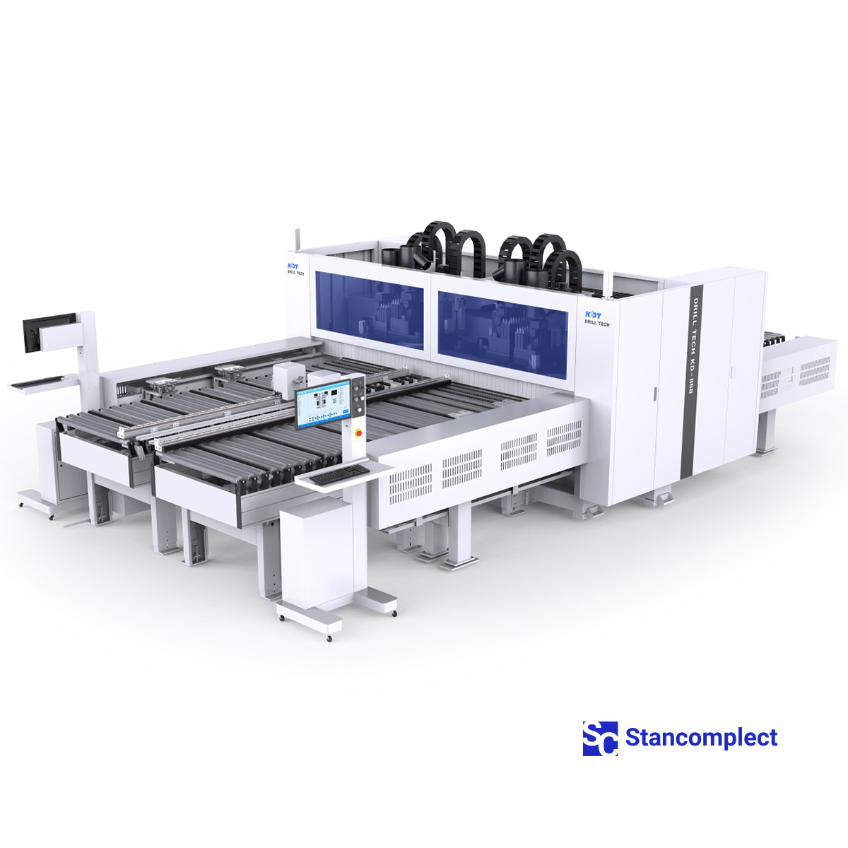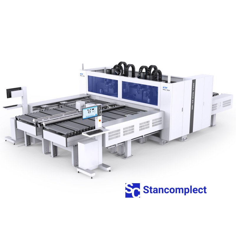 The KDT KD-868HA CNC through drilling center with six drilling, four milling and two grooving groups on two independent tables is designed for high-speed processing of workpieces from six sides in the through mode, which allows increasing the processing efficiency. The machine is used for serial production.