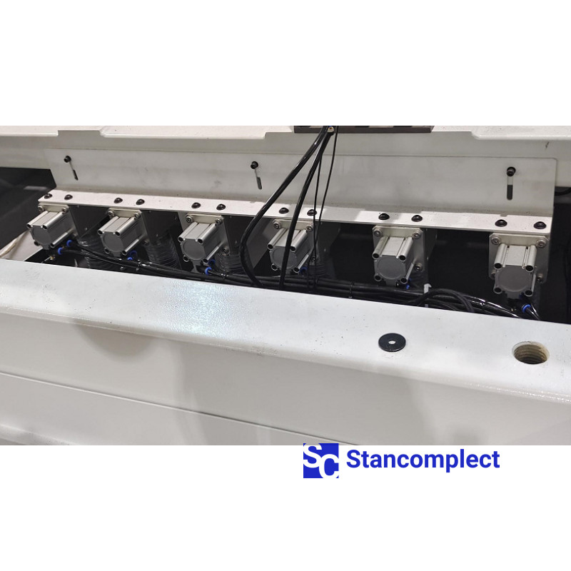 Vacuum table with working area 3100*2150*230 mm for 6 vacuum zones with electronic control. It is possible to work in pendulum mode and with small parts.