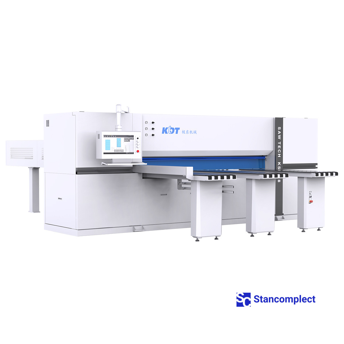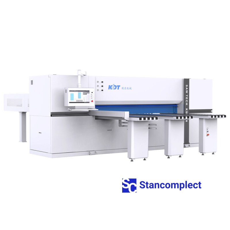 The CNC panel saw/beam saw KS-828DT with grooving function from KDT Machinery is designed for automatic cutting of a package of coated or uncoated chipboard, MDF, fiberboard boards with a maximum package height of up to 90 mm. The CNC panel saw/beam saw from KDT is characterized by the highest reliability, large margin of safety and high quality cutting of laminated boards.