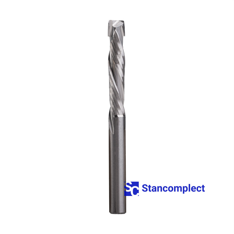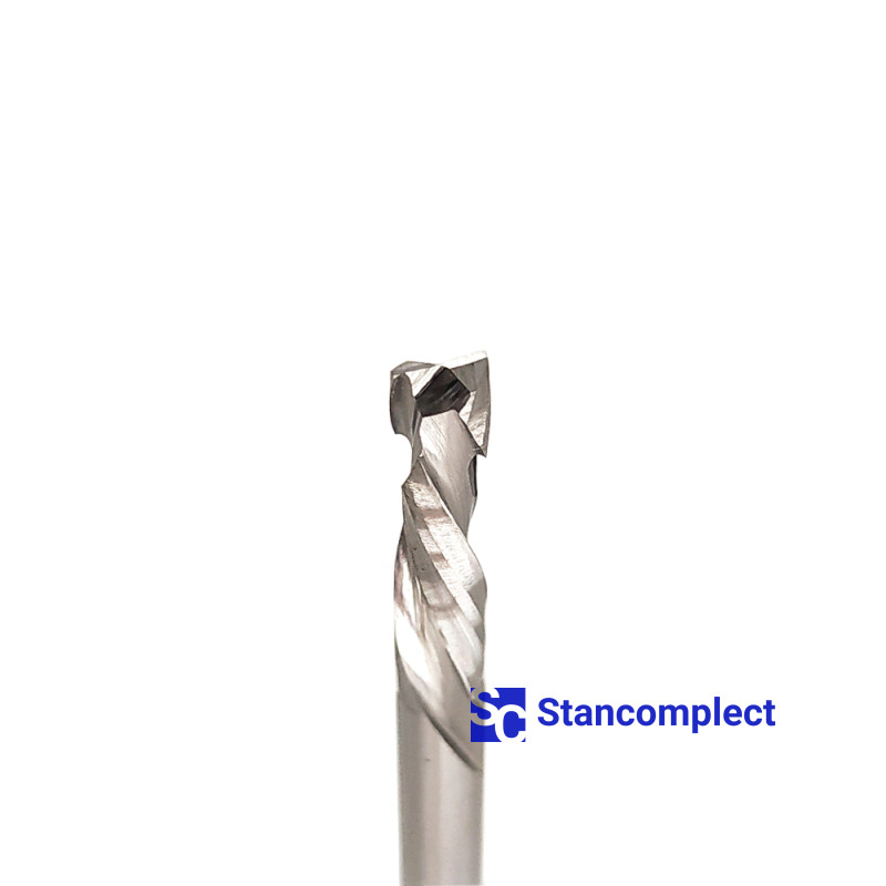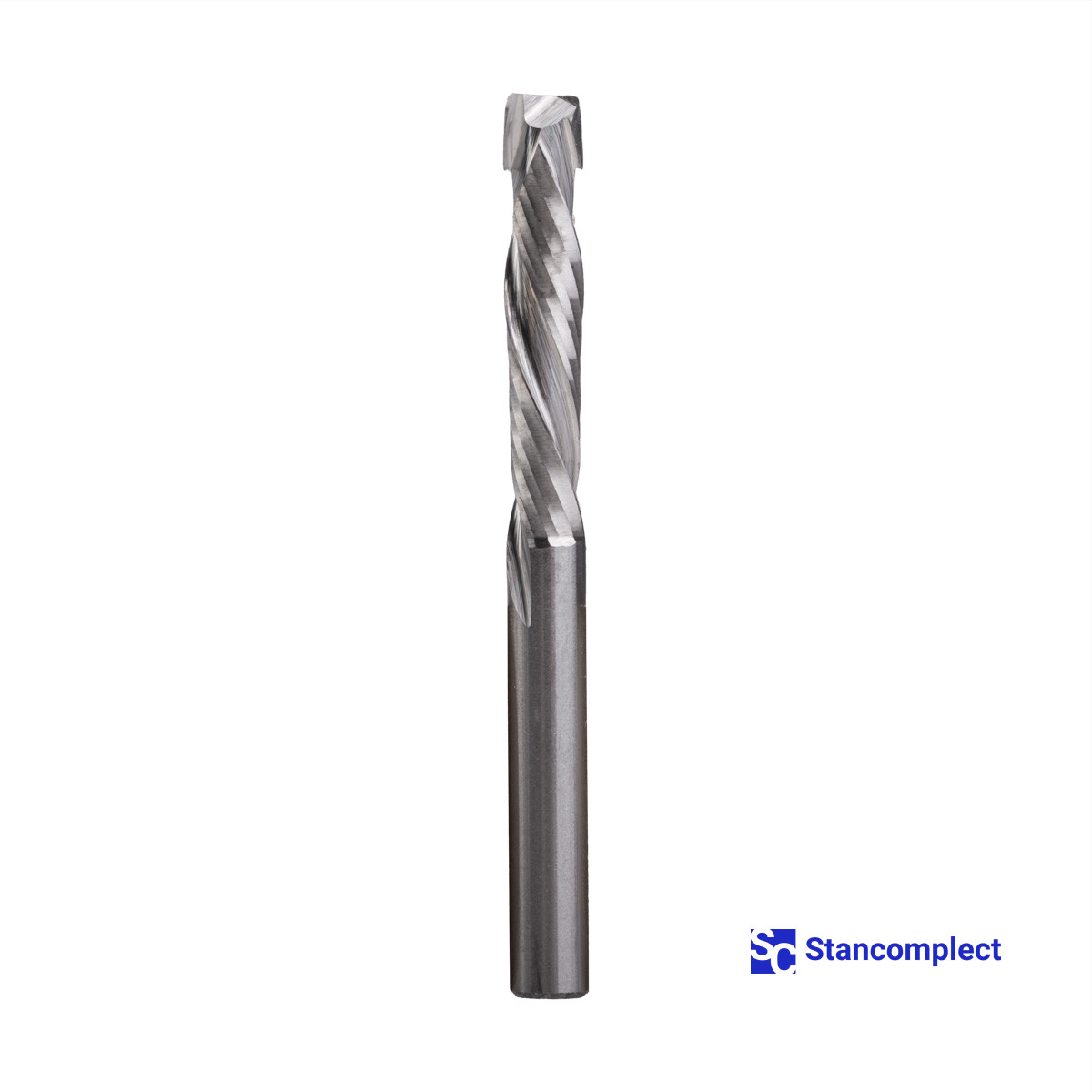 Compression router bit 4x22x45 mm for CNC machines for wood. Thanks to multidirectional cutting edges, this compression bit tolerates high loads and cutting speeds well. As a rule, it is used for contour cutting, 2D sampling (grooving, quarters, recesses for mortise fittings, etc.), as well as for giving workpieces any geometric shape. The main direction is plywood processing. Not afraid to work with MDF, chipboard, soft woods.