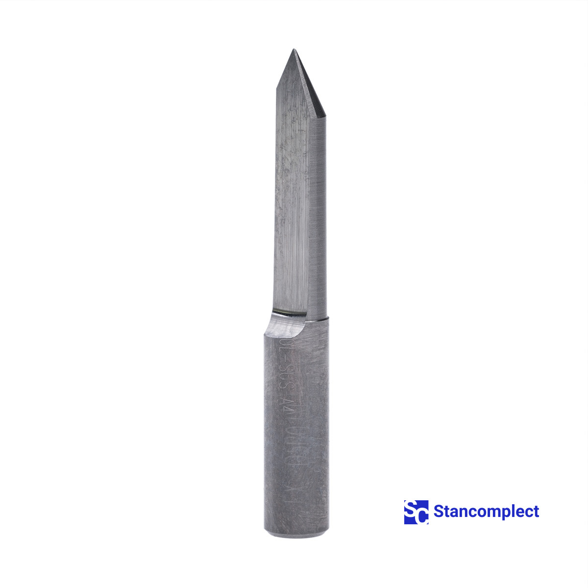 Conical engraver with straight shelf D-6, W-0.1, A-60, L-50 for CNC machines. The engraver conical with a straight shelf is used for processing plastic, plexiglass, acrylic, wood, aluminum and alloys, stone. Types of processing: engraving and sampling, relief processing.