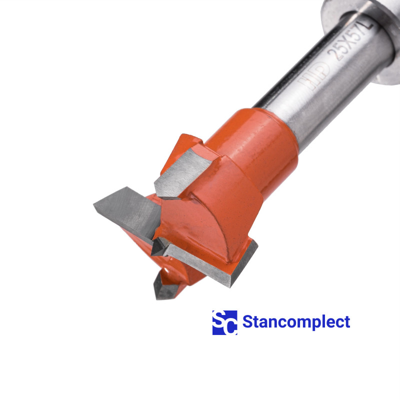 Hinge cutter HD d-25 mm, L-57 mm left ( 140 series) is designed for drilling holes for mini hinges. Hinge hole cutter is great for workpieces made of: MDF, chipboard, chipboard, solid wood, softwood and plywood.