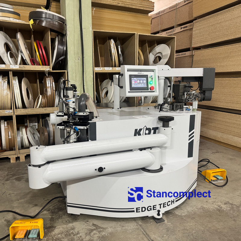 The KDT-305MC curvilinear edgebander from KDT Machinery, featuring a quick-change glue pot system for PUR/EVA adhesive, is designed for precise, high-speed edgebanding of straight and curved workpieces, followed by mechanical finishing by milling and scraping. Workpieces are fed through the edgebanding unit using hot-melt adhesive applied by a roller, either automatically via an automatic feeder or manually.