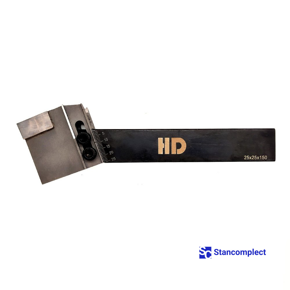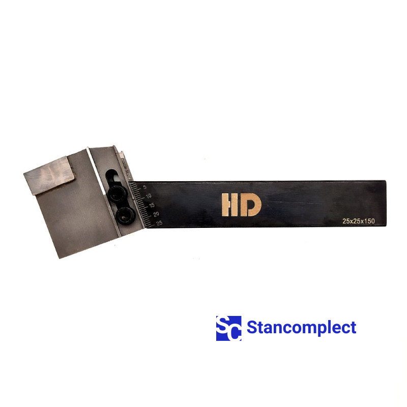 CNC Wood Lathe Knife L28xR1 mm with holder 25x25x150 mm. The cutting part consists of structural alloyed steel St40x. It contains from 0.36 to 0.44% carbon, which affects the strengthening of strength and the deterioration of ductility and weldability of steel. In alloy 40x, the total composition of alloying elements is greater than 2.5%, which refers this steel to the alloyed group.