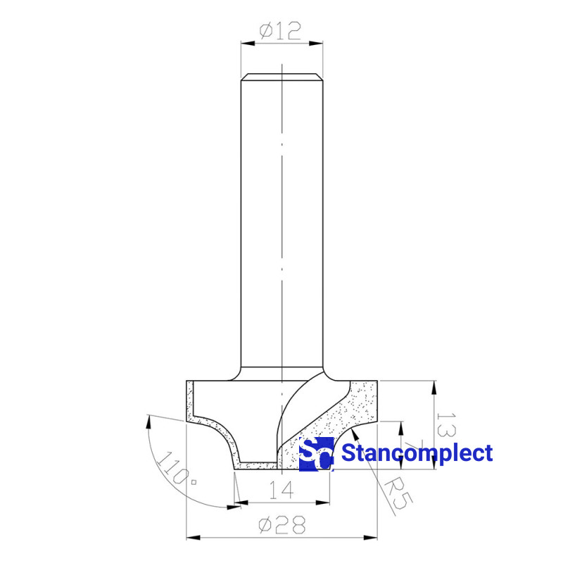 Diamond panel router bit D28 h13 L57 d12 R5 Z2 is designed for processing board materials (chipboard, chipboard, MDF, etc.) uncoated and coated, as well as hardwood and is used in CNC machines for the manufacture of furniture facades. The milling cutter is characterized by high reliability and long service life.