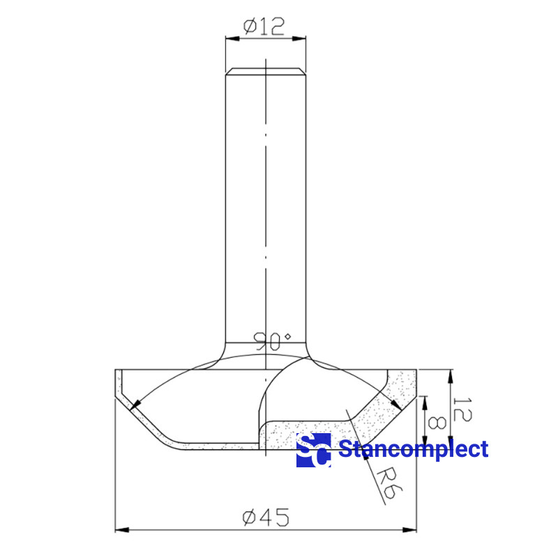 Diamond panel router bit D45 h12 L58 d12 R6 Z2 is designed for processing board materials (chipboard, chipboard, MDF, etc.) uncoated and coated, as well as hardwood and is used in CNC machines for the manufacture of furniture facades. The milling cutter is characterized by high reliability and long service life.