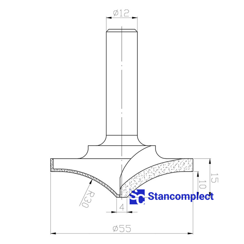Diamond panel router bit D55 h15 L65 d12 R30 Z2 is designed for processing board materials (chipboard, chipboard, MDF, etc.) uncoated and coated, as well as hardwood and is used in CNC machines for the manufacture of furniture facades. The milling cutter is characterized by high reliability and long service life.