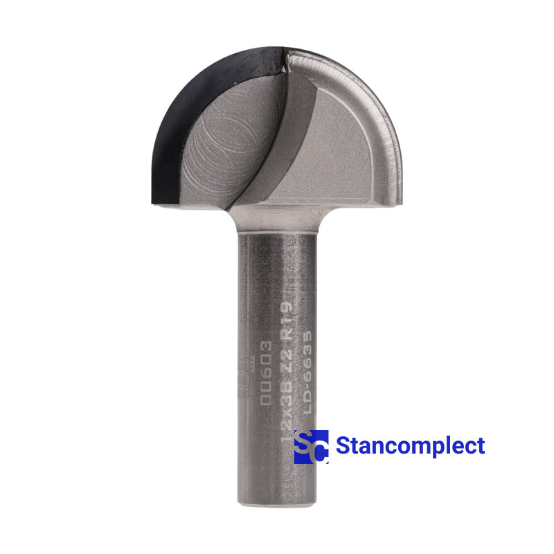 Diamond round nose router bit D38 h24 d12 L69 R19 Z2 is designed for processing board materials (chipboard, chipboard, MDF, etc.) uncoated and coated, as well as hardwood and is used in CNC machines for the manufacture of furniture facades. The milling cutter is characterized by high reliability and long service life.