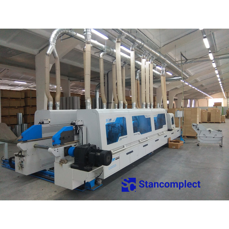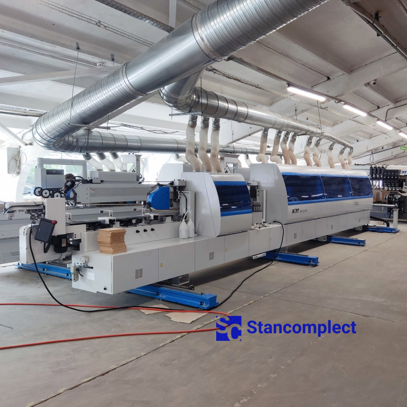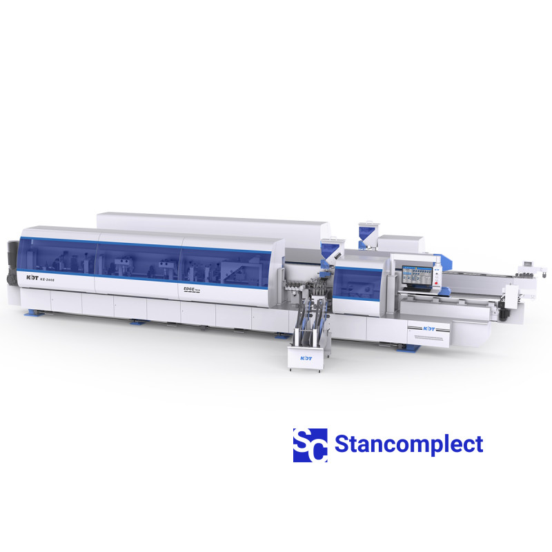 Double-sided automatic edge banding machine of the pass-through type KE-2468JHSKCAD from KDT MACHINERY is designed for simultaneous lining of straight edges of furniture panels and blanks with synthetic roll material. It is used at furniture factories producing serial furniture.