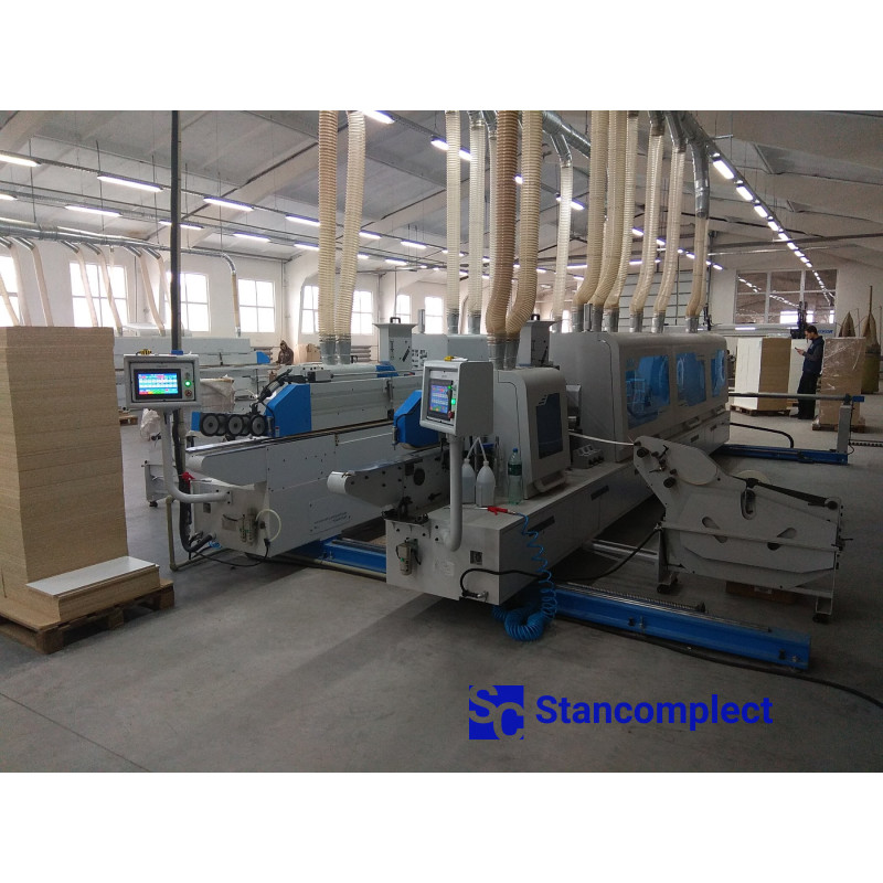 - A pressure belt instead of rollers guarantees precise positioning of the part during all stages of edge processing at a speed of 26 m/min.