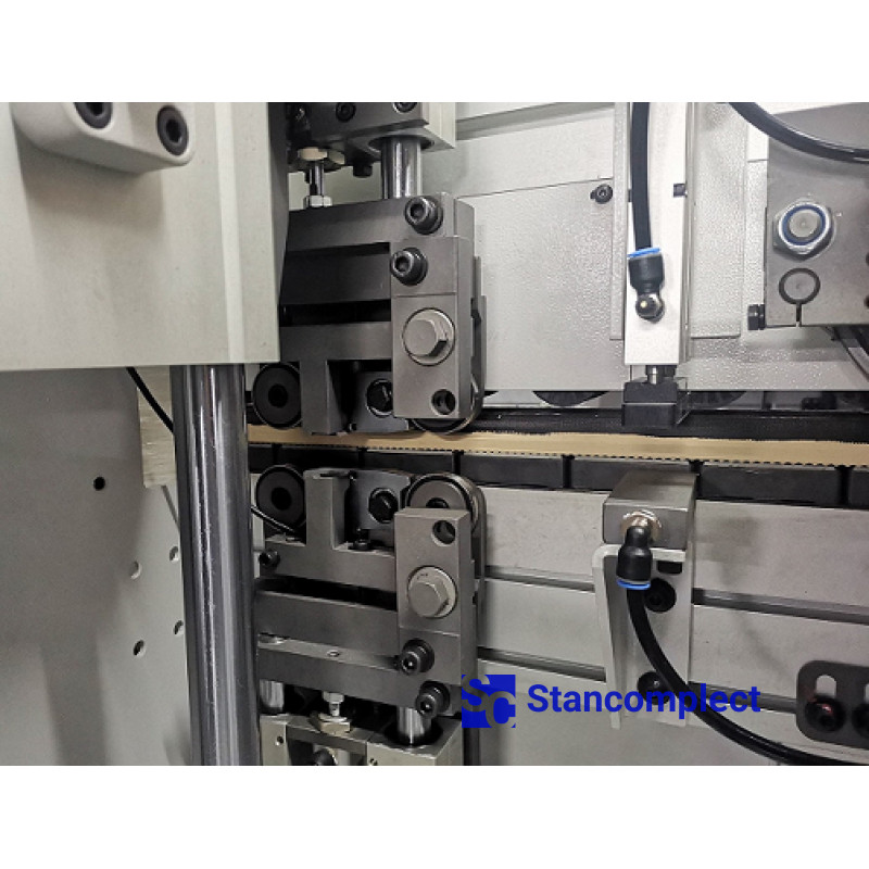 The rounding (contouring) unit is equipped with four high-speed motors and operates successfully at a speed of 26 m/min. The unit is equipped with diamond radius cutters. There are four possible operation schemes for the unit.
