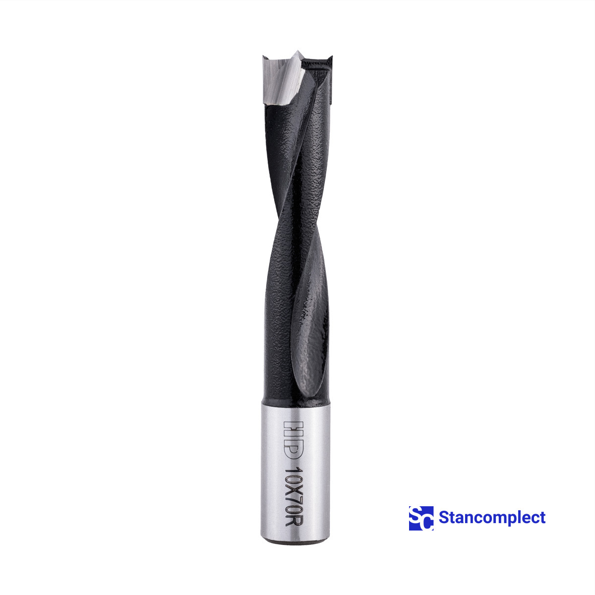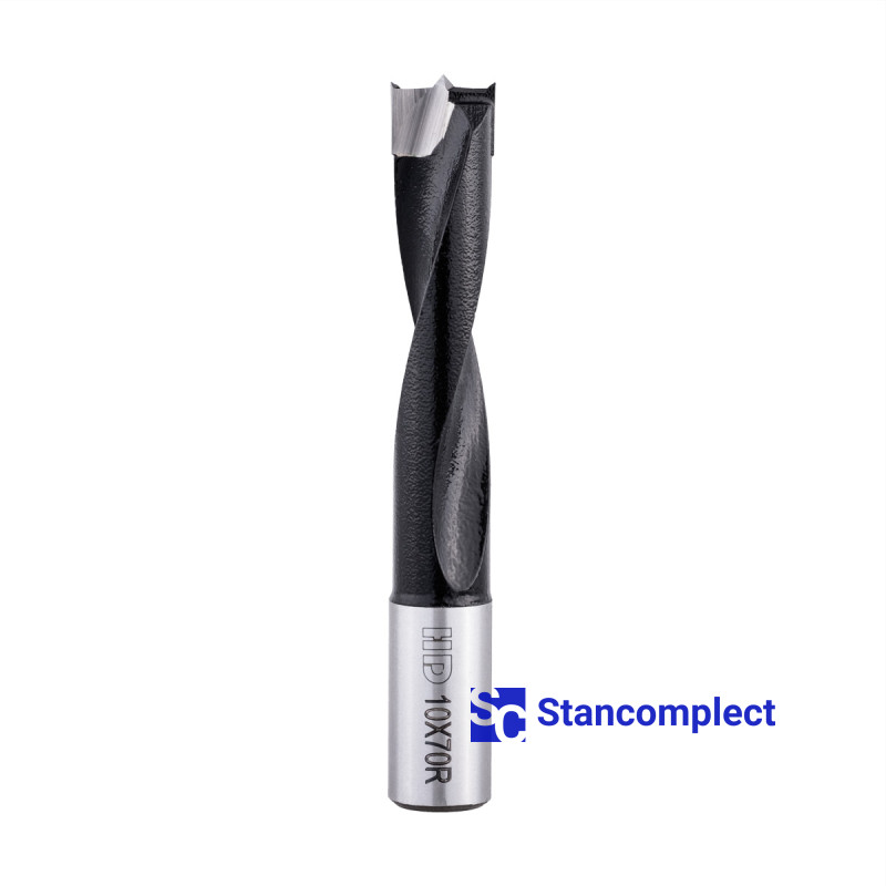 Blind hole drill bit HD d-10 mm, L-70 mm right with brazed plate (110 series). This drill bit is excellent for drilling blind holes in workpieces made of: MDF, chipboard, chipboard, solid wood, softwood and plywood.